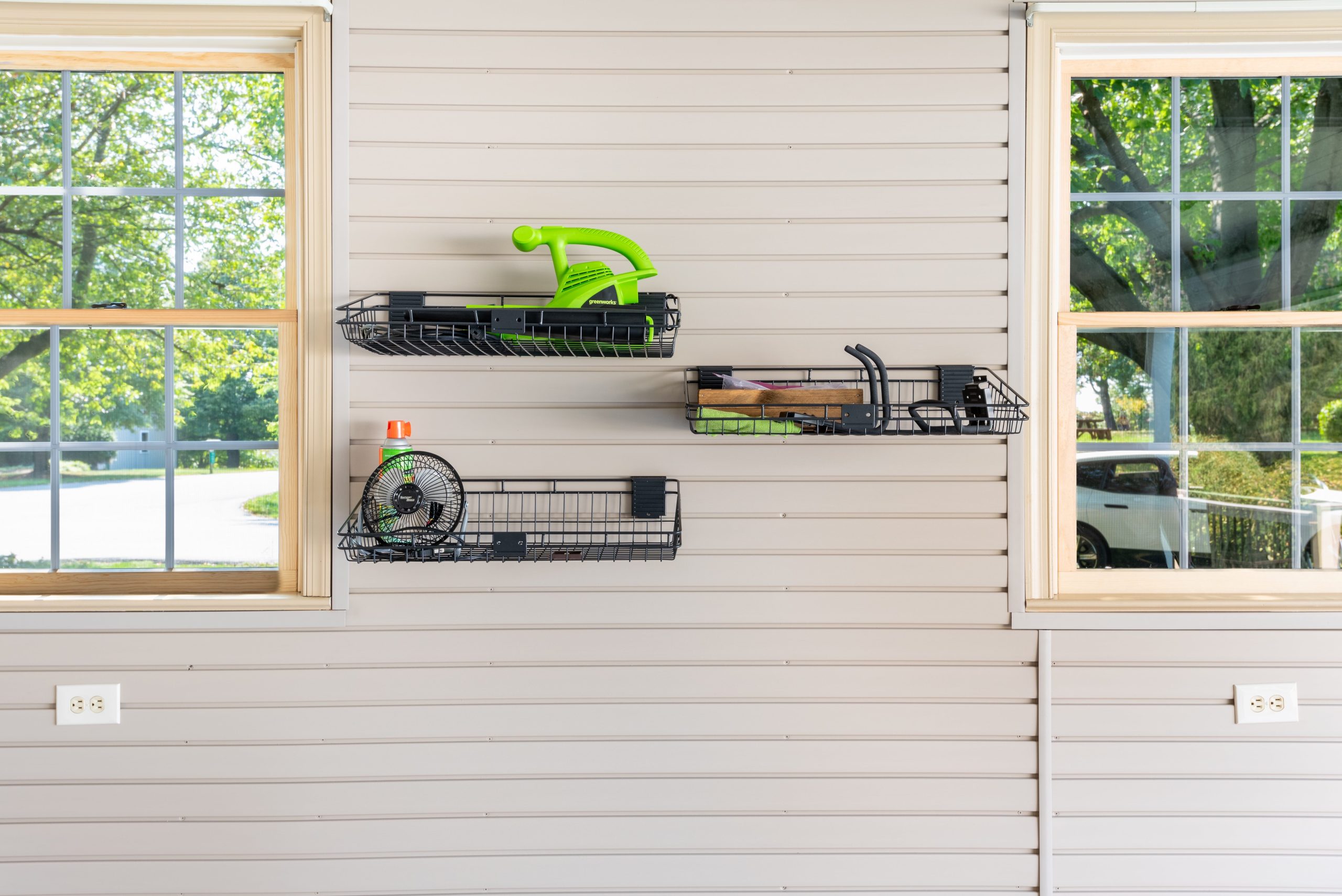 Our wall storage systems offer versatile solutions to accommodate both large and small items, effectively managing clutter and maintaining a well-organized space